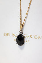 9ct White and Yellow Gold pendant featuring a natural brown black Cabochon Star Sapphire with one round brilliant cut white Diamond.