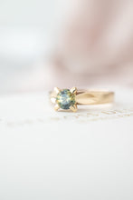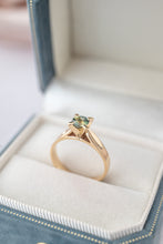 This lovely vintage setting has been given a new life with this gorgeous Australian parti-sapphire being freshly set into it by Delross Design Jewellers. This ring came to us with a synthetic gemstone and we have replaced it with an Australian classic! Sapphires are incredibly hard and tough, perfect for daily wear, with colours of green and gold dancing within the stone. This ring would make a beautiful engagement ring or dress ring.